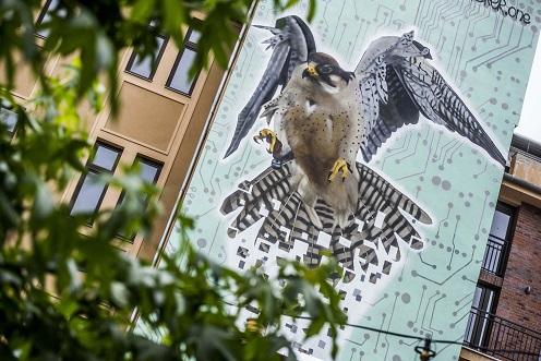 V. Németh Zsolt környezetügyért, agrárfejlesztésért és hungarikumokért felelős államtitkár mutatta be annak a 8 alkotásnak az egyikét, amely segítségével képzőművészek budapesti tűzfalakon jelenítik meg a hungarikumokat.